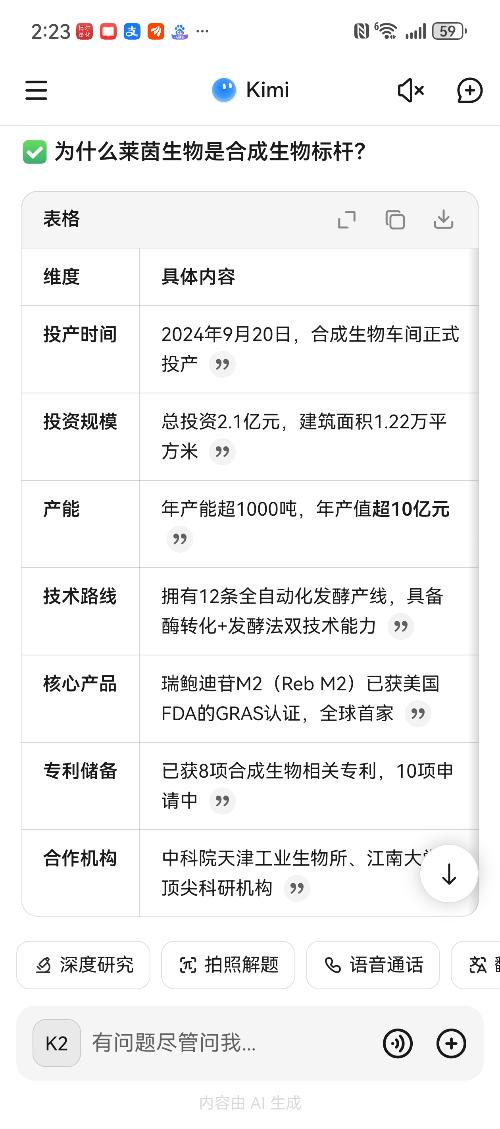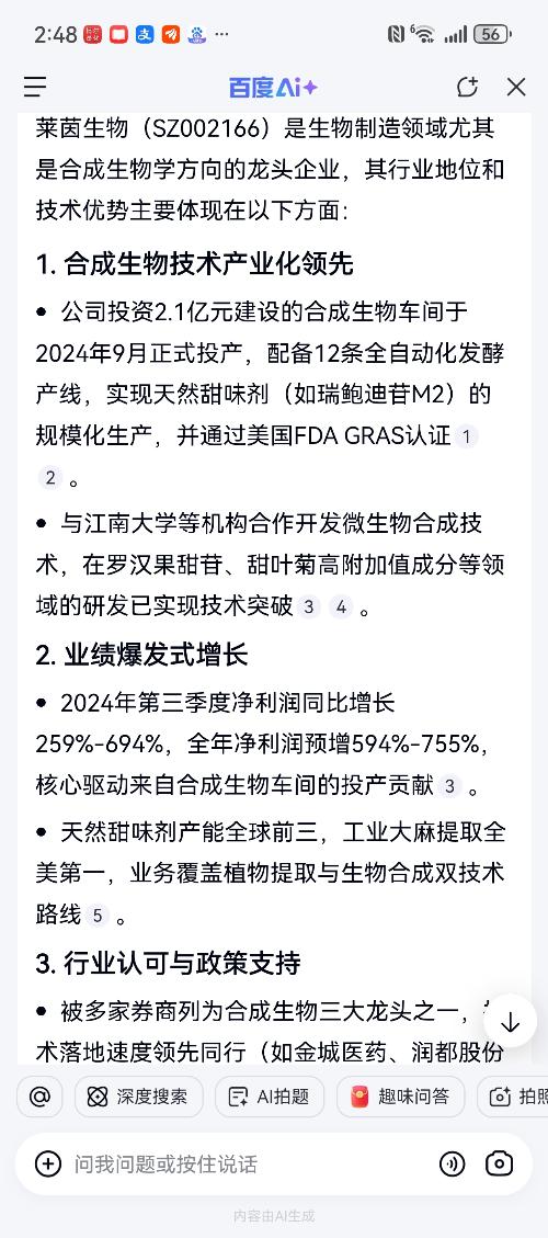 莱茵生物是生物制造领域尤其是合成生物学方向的龙头企业。莱茵生物被多家券商列为合成生物三大龙头之一,技术落地速度领先同行(如金城医药、润都股份等仍处于规划阶段)