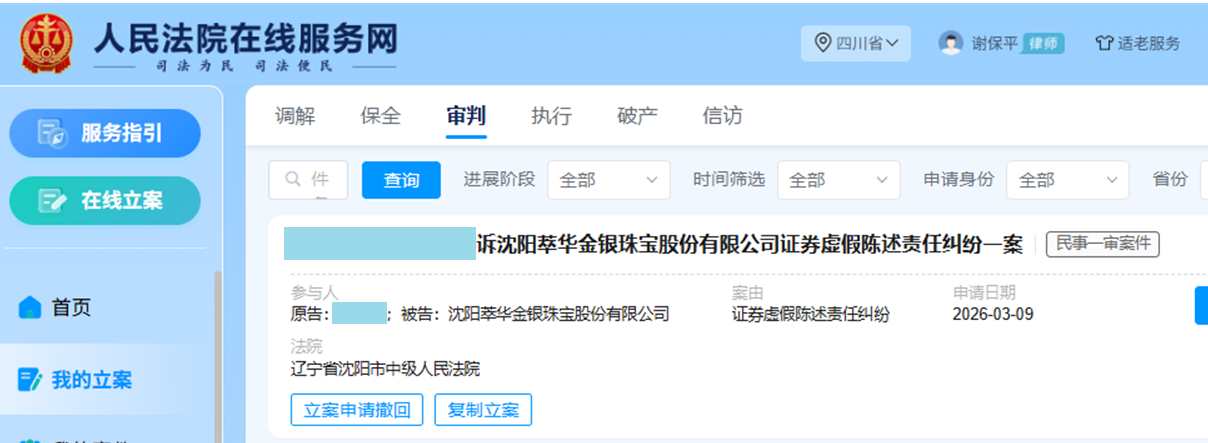 最新动态@受损股民加入立案!《立案》说明什么?证监会一般在掌握较为充分证据后,才会进行立案调查,维权时间节点至关重要!符合以下情况的可参加索赔:2026年2月6日之前买入002731萃华珠宝,且在2026年2月10日(含当日)之后卖出或继续持有者。以上索赔登记条件仅代表证威律所观点。不作为任何证券投资决策和买卖建议,最终以法院的认定结果为准。了解更多点头像看企业信息或查看证威律所相关信息