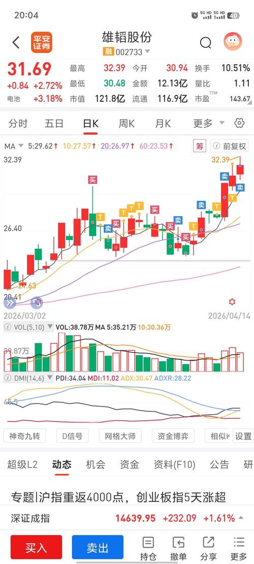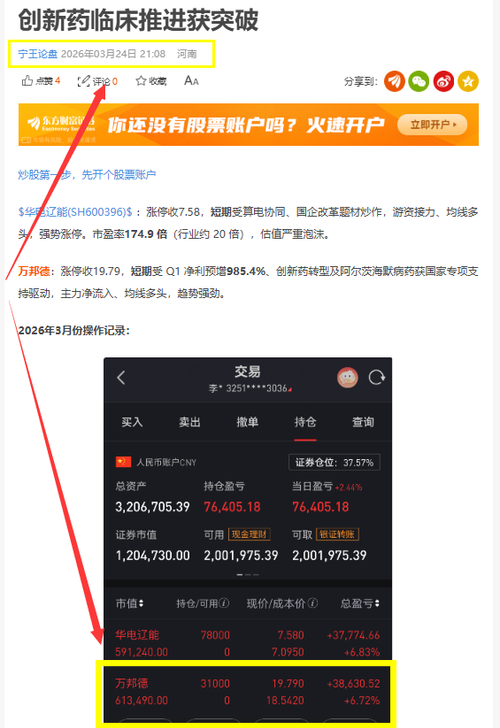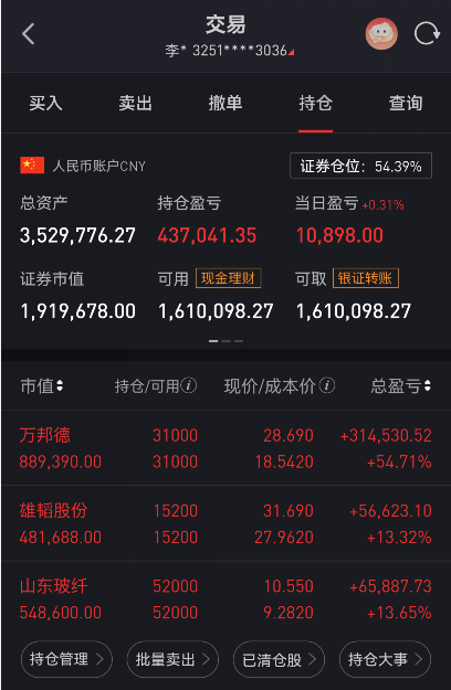 雄韬股份:震荡走高股价收31.69。主力净流出3788万,换手率10.51%,市场分歧适中。锂电UPS龙头,深度绑定AI算力,在手订单饱满。 山东玻纤:微跌收10.55,技术面多头排列向上,但是股性现在走弱。 万邦德:今日早盘冲高了一波,最后还是收绿,市场那么好,还是不太好,该考虑止盈了。宁王是在3月24日建仓布局的,一直持有到现在,目前获利还剩54%。 2026年4月份操作记录: 持仓情况:$万邦德(SZ002082)$...
