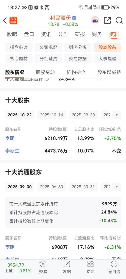 $利民股份(SZ002734)$ 这李明从20%减到13%