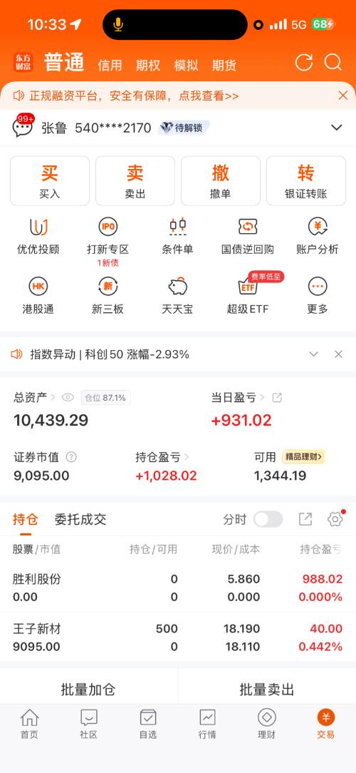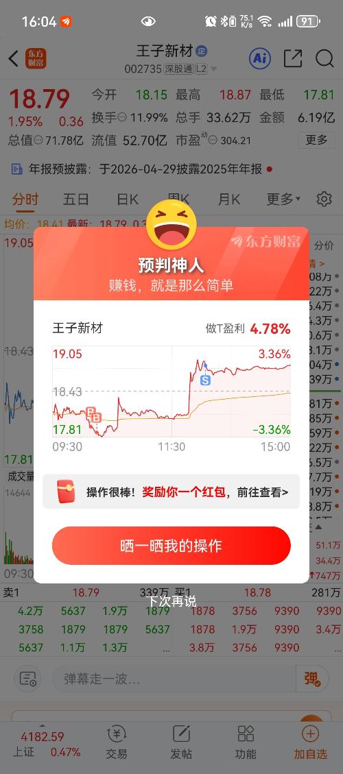 $王子新材(SZ002735)$ 委托标的: 买卖方向: 笔记: 还好慢了步