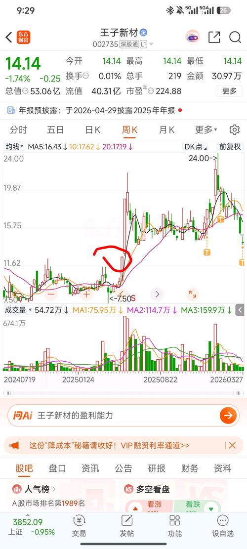 $王子新材(SZ002735)$不贪了、见好就收!一会又下去了