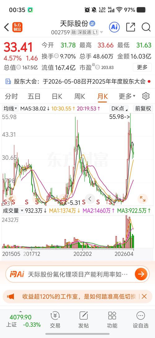 $天际股份(SZ002759)$按年线看,这是走下坡了,不过他是真妖,从去年八月到今年一月翻了六倍多刚从抖音上刷到这个票过来瞅瞅