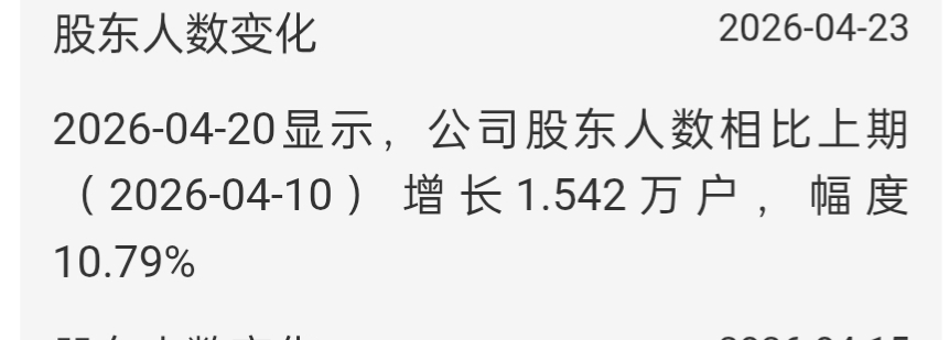 【问】尊敬的董秘您好,请问公司到四月二十日的股东人数,谢谢【答】天际股份:您好,根据中国登记结算有限公司定期下发数据,公司2026年4月20日股东人数为158,332,谢谢