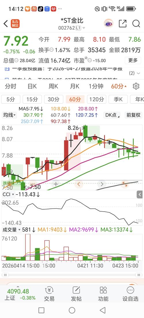 $*ST金比(SZ002762)$这走势一点都不像要摘帽的股票