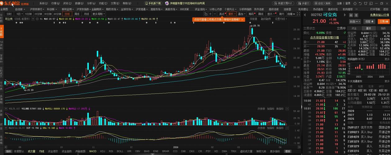 $可立克(SZ002782)$昨天尾盘补仓了,目前看来还不错