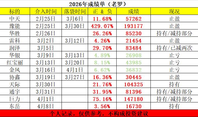 4.14实战记录,快进快出策略吃肉离场落袋为安 今日建仓$乾照光电(SZ300102)$$通宇通讯(SZ002792)$$顺灏股份(SZ002565)$ 其它全吃肉离场,落袋为安,不贪了 声明:以上内容,仅为个人观点,不作为任何投资依据与建议,有不同观点可以评论区讨论!