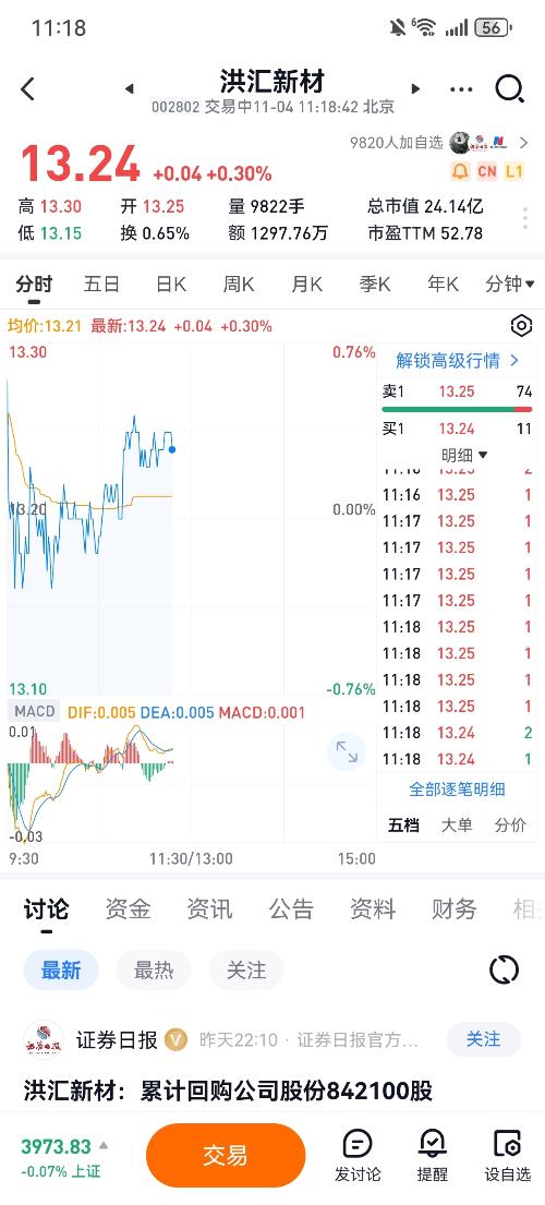 $洪汇新材(SZ002802)$开始试盘了吗?