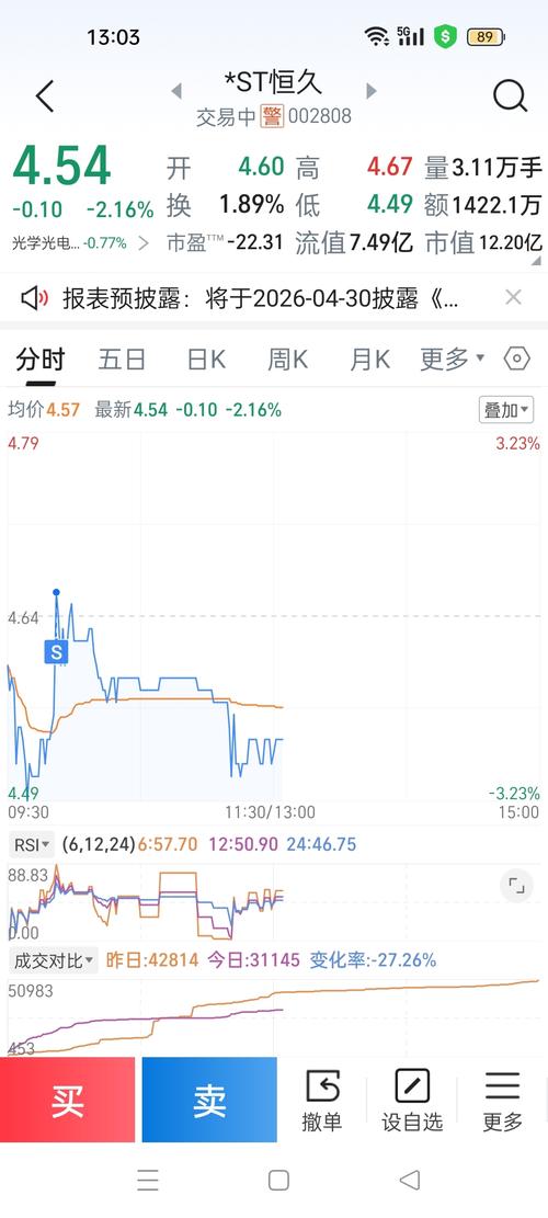 $*ST恒久(SZ002808)$果然低开低走跌停了要