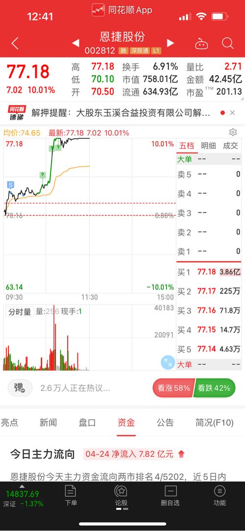 资讯 恩捷股份(002812)龙虎榜数据(04-24)