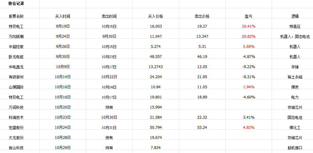 充满希望的11月已到来,感谢我大A,感谢所有主力,10月小目标已超额圆满完成
