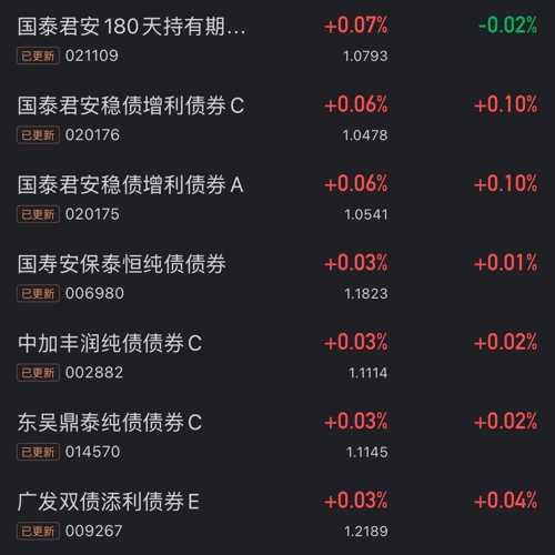 大盘涨跌都能接受,但债市这样的小涨小跌,最适合长期稳健理财的人啦~ $国泰君安180天持有债券发起C$上涨0.07% $国泰君安稳债增利债券发起C$上涨0.06% $国泰君安稳债增利债券发起A$上涨0.06%