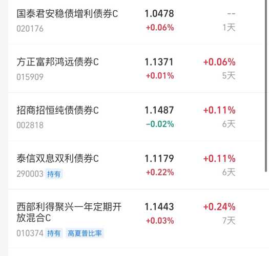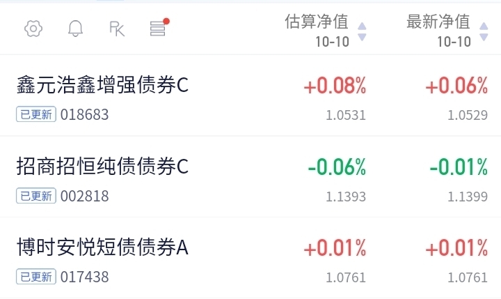 二:债市天气(10:45分) 利率债:雨天 信用债:多云 本人今作如下(仅分享,不推荐) $招商招恒纯债C(OTCFUND|002818)$+5000元、今日继续加仓招商招恒纯债C,招商招恒上周五收了27个蛋,近期也是涨多跌少,表近一个月收益率1.48%,近一年收益率2.99%,收益远超货币基金两倍,持有体验感就是稳稳的幸福,近期收益也是慢慢好起来了,行情好的时候时常会爆大蛋,行情不好的时候碎...