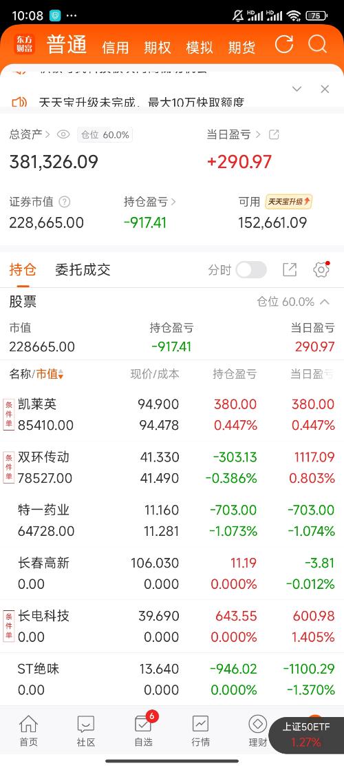 韭后老斯基实盘记录 买入:$凯莱英(SZ002821)$ 持有:$双环传动(SZ002472)$ 持有:$特一药业(SZ002728)$ 卖出:长春高新 我将用真实账户记录每一天的操作,用行动见证翻倍之路! 希望各位股友多多支持,点赞富一生,评论888我们一起发!