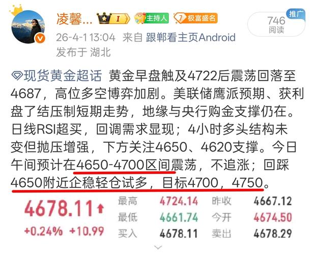 近期一直提示大家,黄金多头未变,依然会强势上攻,午间回踩我们进场位4667,拉升至4733一下,再收66个点! #收盘点评##复盘记录##股市怎么看##实盘记录##周末杂谈#...