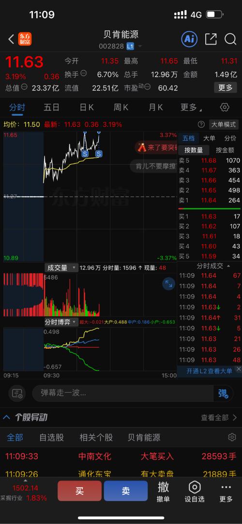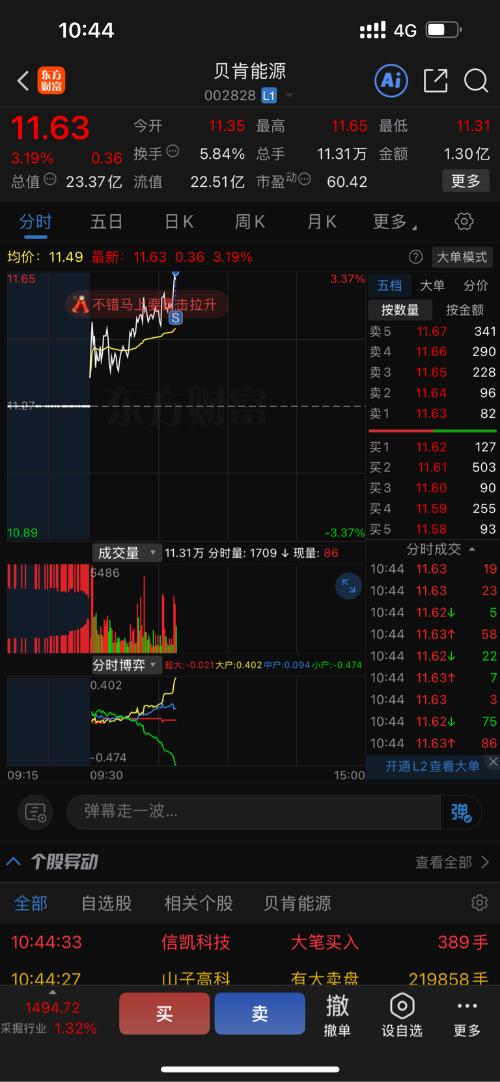$贝肯能源(SZ002828)$11.63进来了,下午冲冲冲