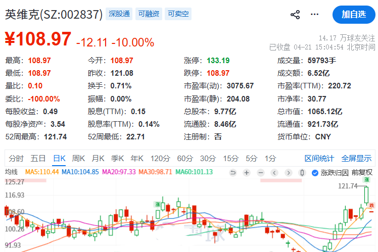 资讯 一字跌停后 “液冷大牛股”英维克公开披露一季度业绩下滑原因