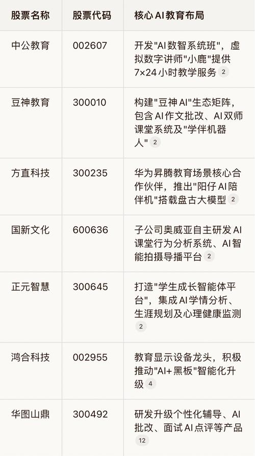 “人工智能+教育”相关概念股(附股)