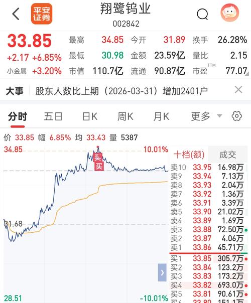 2026年4月16日,翔鹭钨业(sz002842)触及涨停,涨停价34.85元,涨幅9.09%,总市值113.07亿元,流通市值92.78亿元,截止发稿,总成交额17.92亿元。 根据财经媒体分析,翔鹭钨业涨停原因可能如下,光伏钨丝+业绩增长+钨价上涨:1、公司2025年业绩大幅改善,净利润1.44亿元,同比增长260.56%,营收24.09亿元,同比增长37.7%,基本面实现质的提升。同时,光伏...