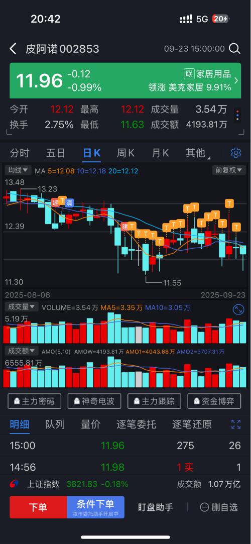 $皮阿诺(SZ002853)$牛市里的降头股,天天绿,哪有什么主力了