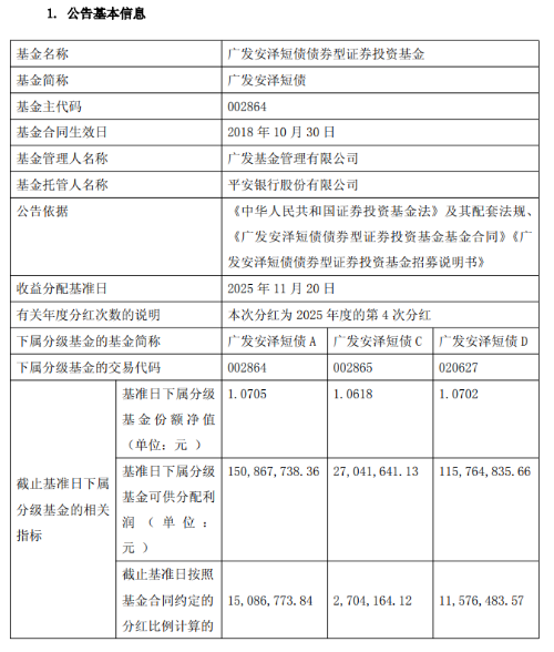 公告 广发安泽短债债券型证券投资基金2025年第3季度报告