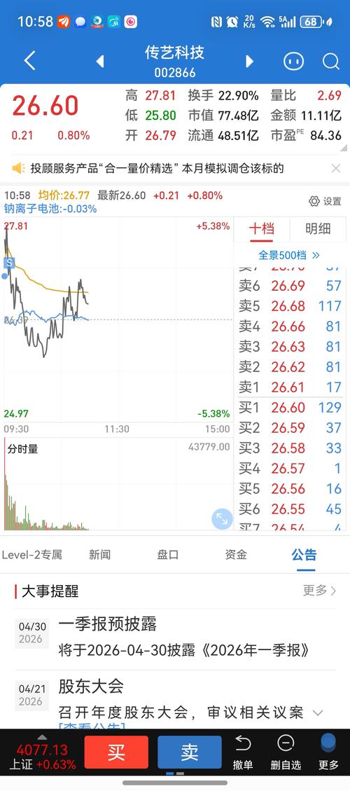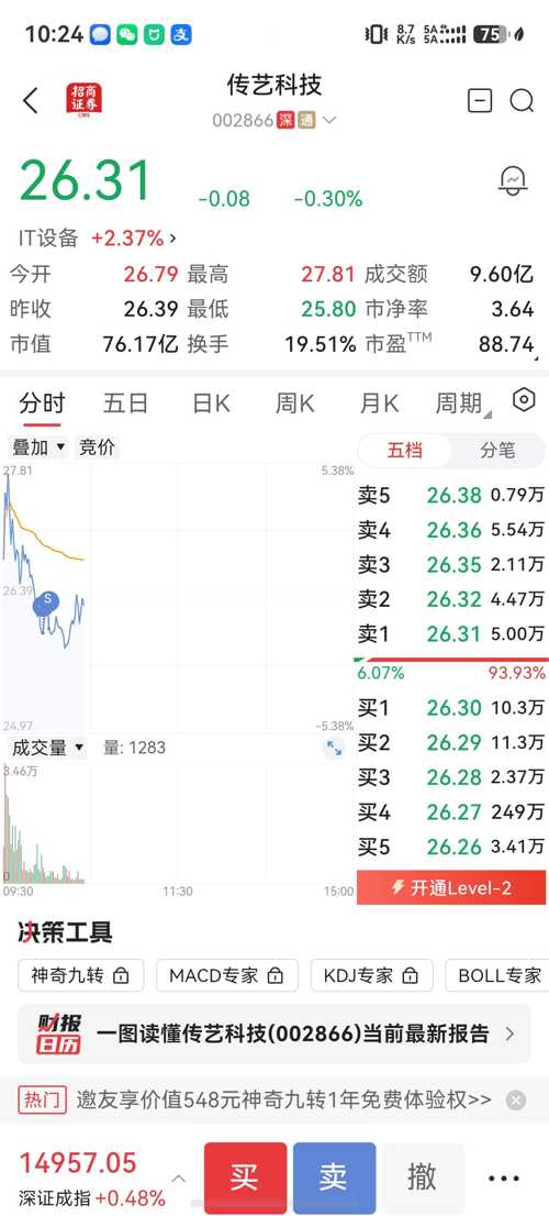 $传艺科技(SZ002866)$早盘高开后震荡回落,回踩25.80元支撑位企稳,量能温和放大,承接有力。按照策略逢低补仓,低吸做T,把握回踩机会,钠电+消费电子双主线加持,趋势不...622 -