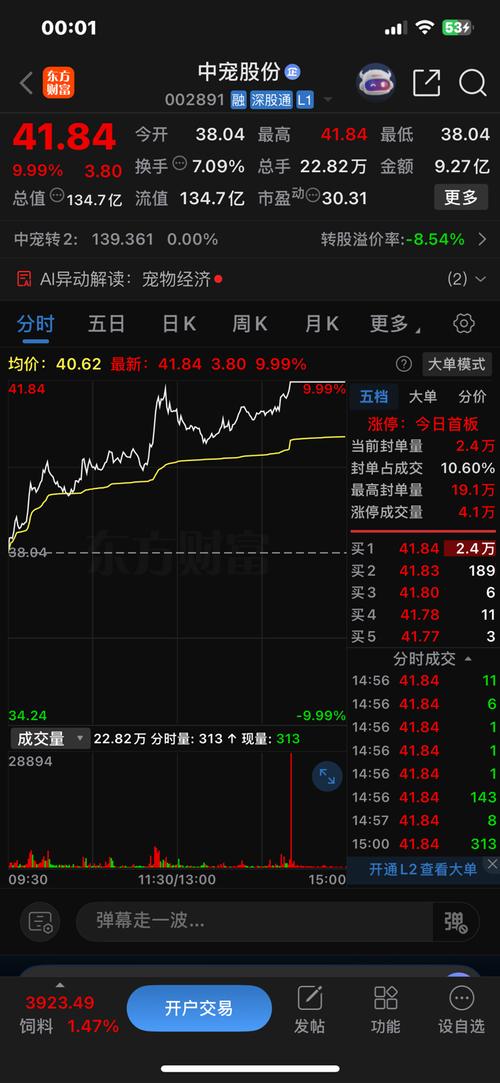 资讯 宠物经济概念股震荡拉升,中宠股份涨停