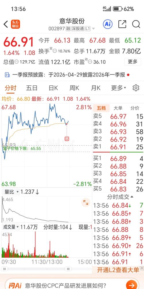 $意华股份(SZ002897)$ 小意,今天突破6756之后,完成趋势反转,调整结束,技术上,需要向下回踩取量。今天在6765附近及以上高抛之后,今天暂不收回,需要观察回踩之后的承接,再确定何时收回。 今天提前提醒了6765附近及以上高抛。