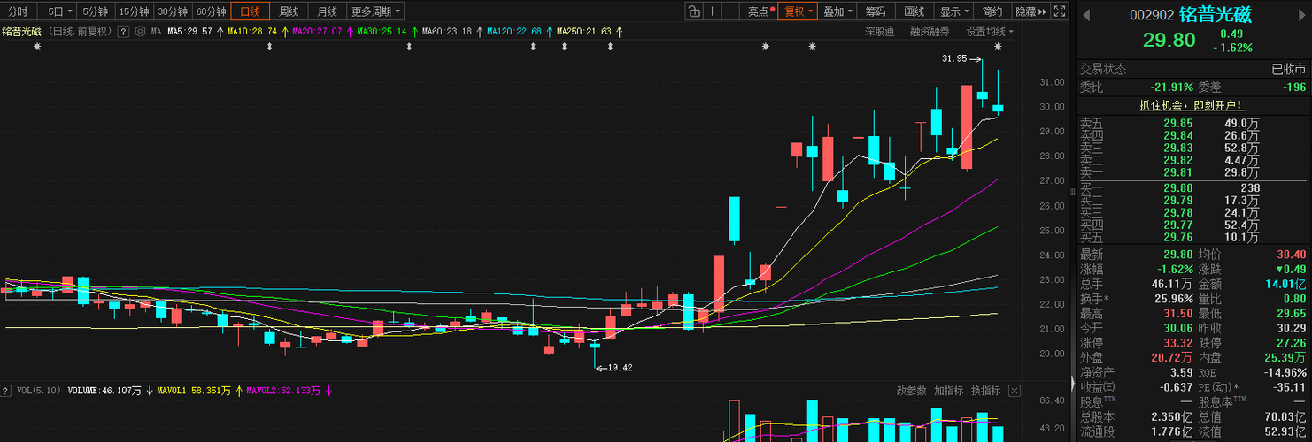 $铭普光磁(SZ002902)$今天没上车是不是错过了啊,