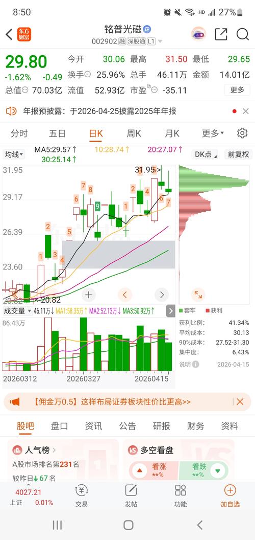 $铭普光磁(SZ002902)$ 今天冲高回落震荡收阴线,多空双方这个位置分歧比较大,之前高位减仓了,仓位也不重,这点底仓就不动了,毕竟趋势还没有走弱嘛,只要是趋势没有走弱,后面还是有可能向上加速走强的,这个票猪力控盘控的厉害,一旦加速走强,向上预期的空间还是不小的。