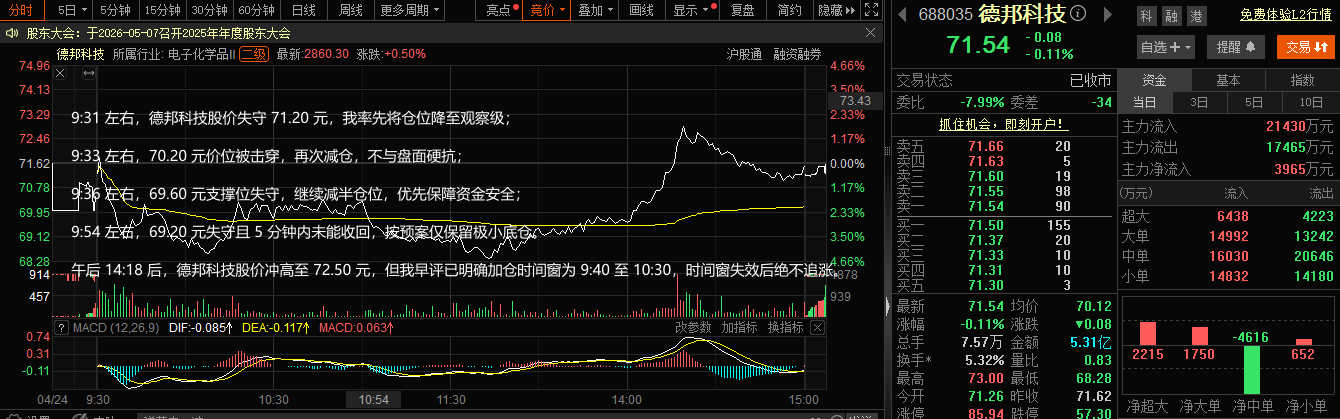 4 月 24 日收评:德邦科技早盘破线果断止盈,严守纪律,只认执行