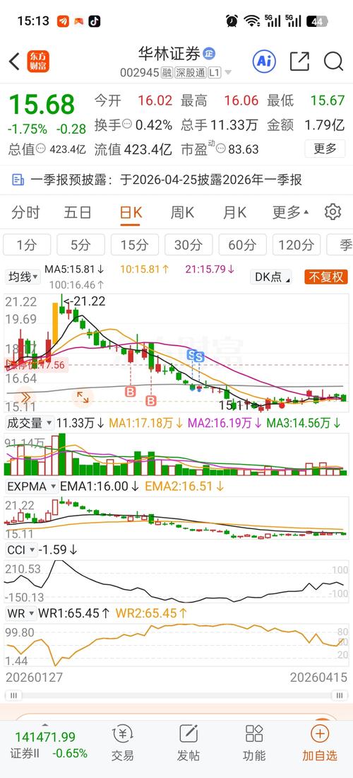 $华林证券(SZ002945)$中期趋势走得偏弱,近期整体板块涨起来的情况下,华林没有跟着拉升起来,所以是偏弱的,短线来看,近期主要是卡着脚底大均线15.64位置附近震荡,所以接下来重点就要盯着这里的得失,能稳住都好说,但如果有效跌破,就要注意破位风险了,需要谨慎应对,不要随便加仓抄底。