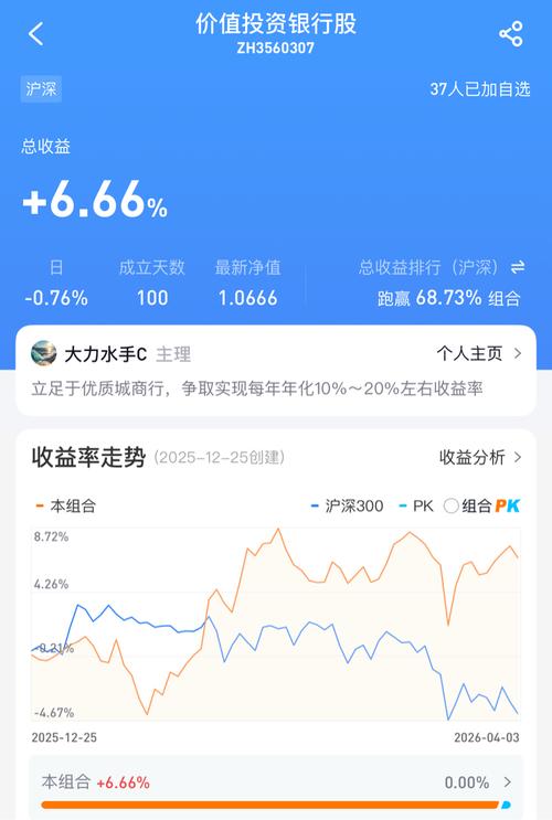 2026年一季度三大指数涨跌不一,其中上证涨幅为-0.48%,深证涨幅0.86%,创业板涨幅为-1.77%,其中楼主重仓的银行股板块涨幅为-0.87%。 楼主账户今年以来涨幅达到12.59%(截止到26年4月4日),跑赢上证涨幅13个点左右,跑赢银行指数13.5个点左右。主要是重仓的青岛银行今年涨幅17.63%,杭州银行涨幅12.46%,齐鲁银行今年涨幅2.49%均实现全面开花。 今年以来,楼主分...