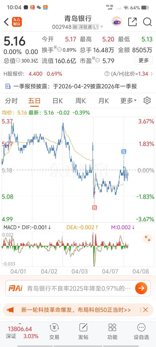 从当前数据看:青银增速强、齐鲁涨不动,差距正在快速缩小。 一、当前价格(4月8日) -青岛银行:5.16元 -齐鲁银行:5.81元 -价差:0.65元 二、为什么能追上(3个硬理由) 1.今年涨幅差太大(青银强太多) -青岛银行2026年至今:+18.97%(银行板块第1) -齐鲁银行2026年至今:+1.22%(几乎没动) →青银今年是爆发期,齐鲁是横盘出货期 2.业绩增速:青银碾压齐鲁 -青岛...