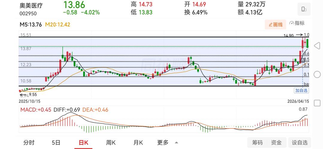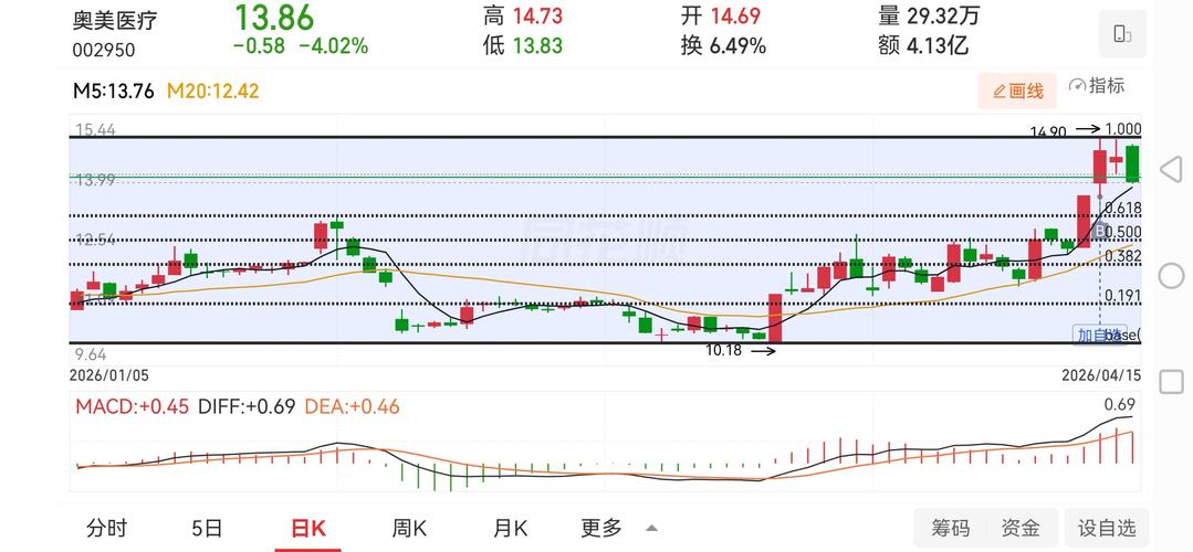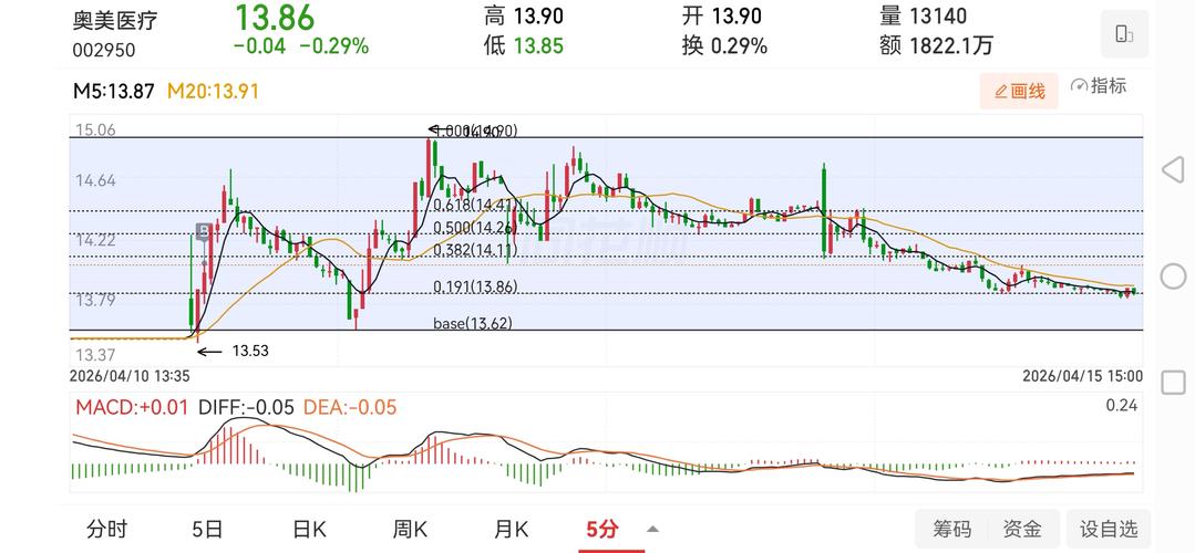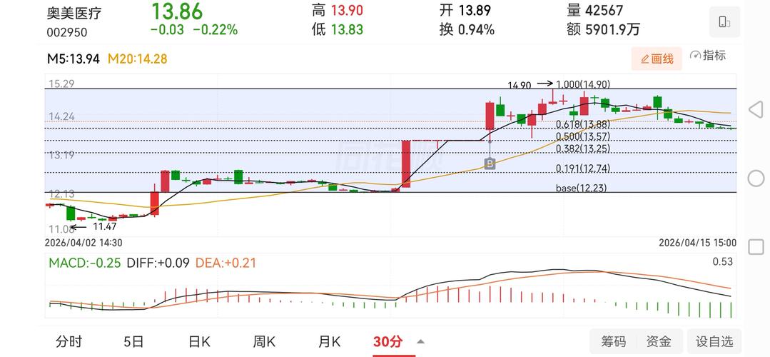 $奥美医疗(SZ002950)$目前的上涨趋势还在,基于以下几点:1.收盘基本站在5日线上,距5日均线0.5个点以内;2.股价站在日线的80%的黄金分割位上;3.股价站在30分钟K线的黄金分割线61.8的分位上,可以认为是一个30分钟的强势调整;4.股价站在5分钟K线图黄金分割位19.1的分位上,可以认为在5分钟K线级别上,股价已经触底,应该反转了。如果不能反转,则必破30分钟K线的61.8分位的...