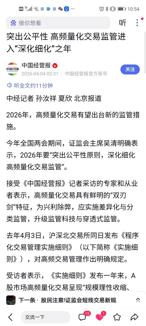 辟谣!辟谣!辟谣!所谓的4月7号量化交易新规是假消息!请看《中国经营报》今天上午刚发的报道,说的是量化交易细则实施一年的相关报道,并没有提到新的要在4月7号实施的规定#炒股日记#