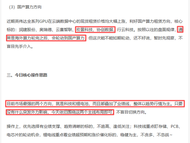 一、个人操作 今天果断兑现了$科瑞技术(SZ002957)$,落袋为安,随后开仓了$沪电股份(SZ002463)$。说实话,我也有点纠结,每天都在切换轮动核心,不知道这个思路到底对不对,有时候会忍不住想,或许还是多持股、拿稳趋势,比频繁切换更稳妥一些吧,慢慢反思调整,看看后续节奏怎么把握更合适。 二、复盘盘前思路 今天早盘写的几条核心思路,没想到盘面全动到了,还是挺欣慰的!一开始就明确了三个方向:...