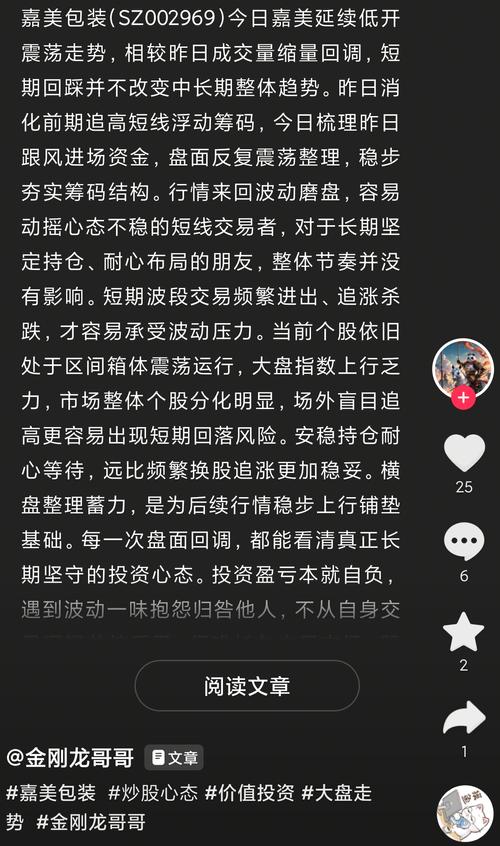 $嘉美包装(SZ002969)$明天大涨,俞总又发了好多抖音