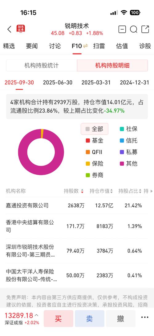 $锐明技术(SZ002970)$就保险一家机构持有???