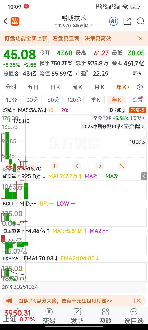 $锐明技术(SZ002970)$昨天低点买的,今天看他反弹不动,下午卖了,几个点走人然后删自选