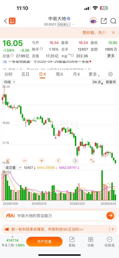 $中岩大地(SZ003001)$这票怎么这么垃圾,天天阴跌,啥时候到底