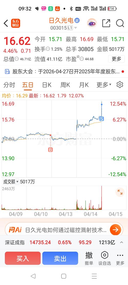 $日久光电(SZ003015)$15.5买入,感觉有大涨潜力,目标50个点