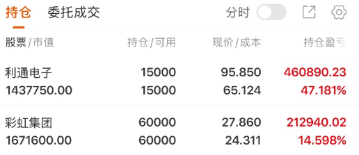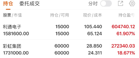 $彩虹集团(SZ003023)$今天走了,拿了一整子没亏钱,挣十来个点也满足了。祝兄弟们后面连板发大财。