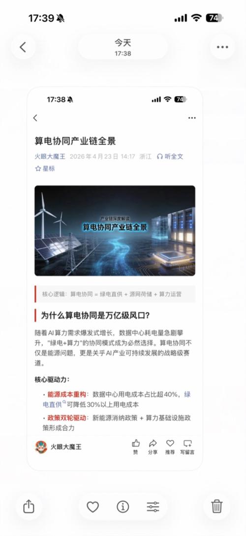 $晶科科技(SH601778)$$粤电力A(SZ000539)$$南网能源(SZ003035)$ 为什么算电协同是万亿级风口? 随着AI算力需求爆发式增长,数据中心耗电量急剧攀升,"绿电+算力"的协同模式成为必然选择。算电协同不仅是能源问题,更是关乎AI产业可持续发展的战略级赛道。 核心驱动力: •能源成本重构:数据中心用电成本占比超40%,绿电直供可降低30%以上用电成本 •政策双轮驱动:新能源...