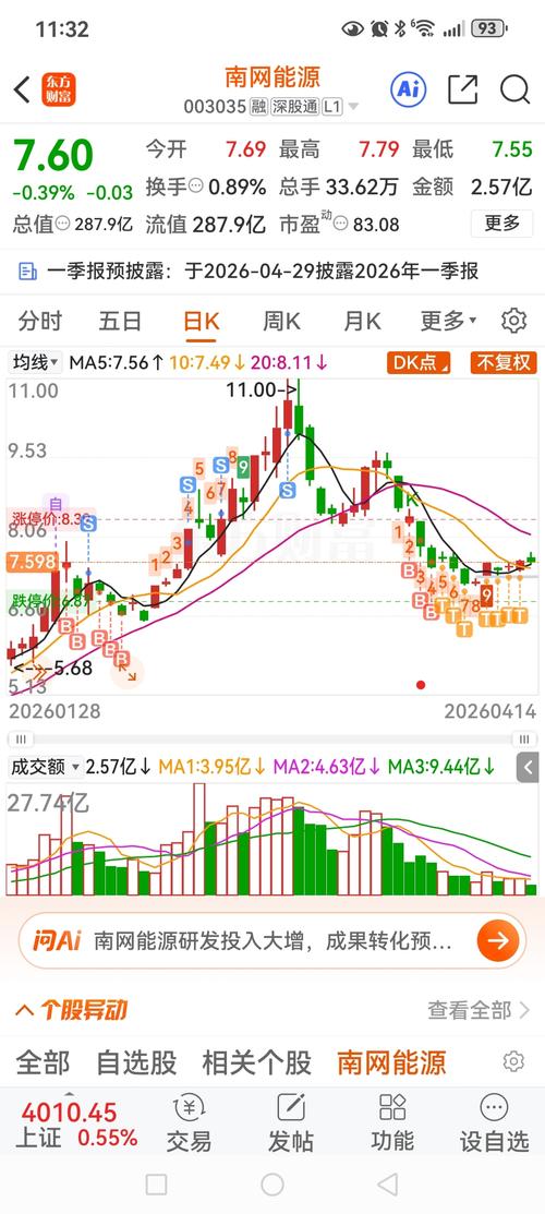 $南网能源(SZ003035)$盘前话【南网能源】:下午盘展望 今日股价震荡下行,KDJ指标显示K值83.08、D值83.08、J值83.08,处于超买区间,短期存在技术性回调需求,今日开盘后大概率会在7.55-7.79元区间运行。从筹码结构来看,7.6-7.7元区间为今日主要成交区,筹码换手相对充分,该区间支撑力度一般,是今日多空博弈的核心位置;若能维持当前量能水平,开盘量能不低于33.62万手...