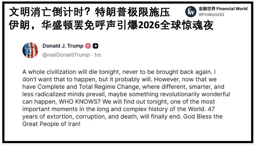 特朗普昨天在社交媒体上投下了核弹级的言论:如果伊朗不重新开放霍尔木兹海峡,一个完整的文明将在今晚毁灭