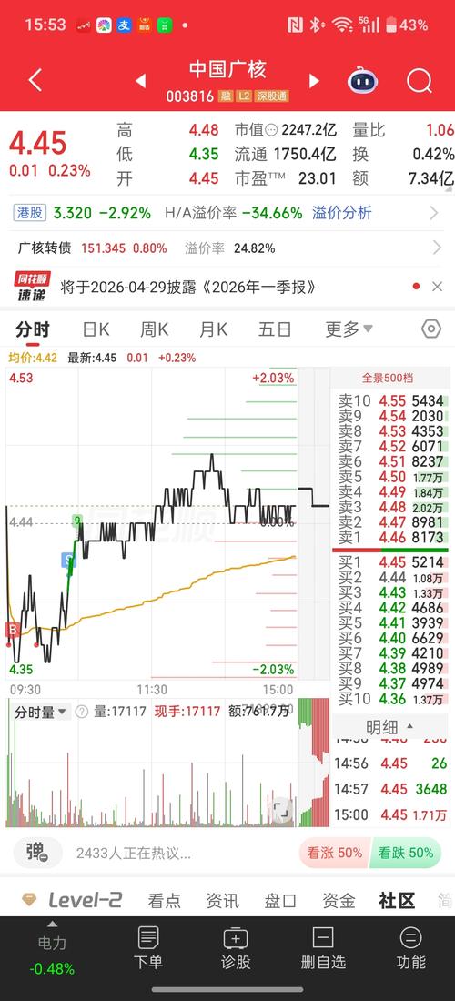 $中国广核(SZ003816)$居然错过了4.35,希望还能有机会