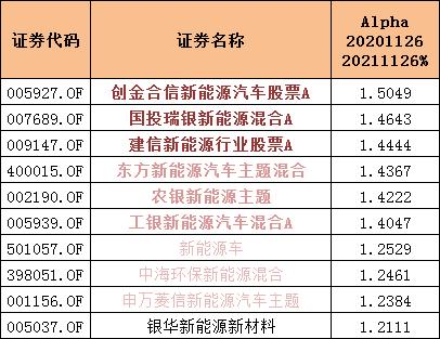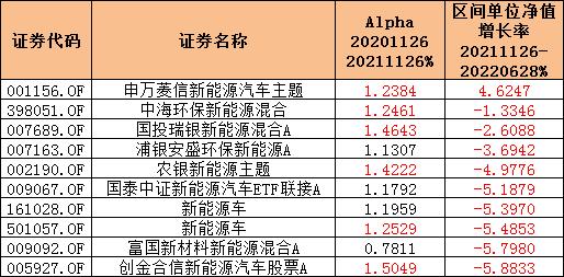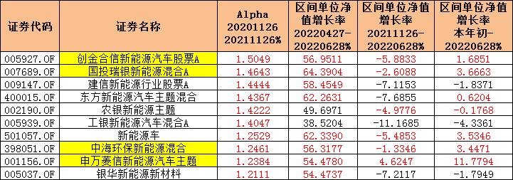 本文要点:1、阿尔法是衡量基金经理超额收益情况的指标,同类型基金比较时,阿尔法数值越大越好。2、选择超额收益高的产品,有25%的可能在后期表现依然优秀,但是更多的可能是表现平平。所以,需要精选基金进行投资。3、阿尔法这一指标有很高的参考性,但不能作为投资基金的唯一指标。4、新能源里符合超额收益高、后期业绩表现仍强劲的产品有两只:创金合信新能源汽车股票A、国投瑞银新能源混合A,这两只产品均未更换基金...