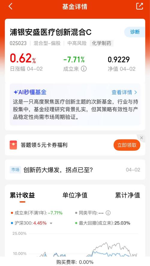 浦银安盛医疗创新今日上涨0.62%,纯创新药赛道领跑,今年大涨15.9%,在同类创新药基金中稳居第一$浦银安盛医疗创新混合C$