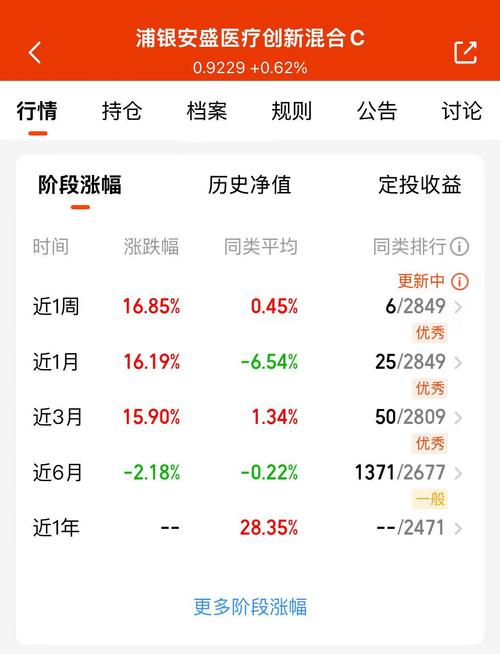 浦银安盛医疗创新专注布局纯创新药领域,今年涨幅达到15.18%,在同类基金中稳居前列$浦银安盛医疗创新混合C$